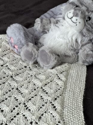 The pattern is simple to follow, with repeating patterns of lace throughout which creates a stunning, delicate design. It’s finished with a simple moss stitch border.