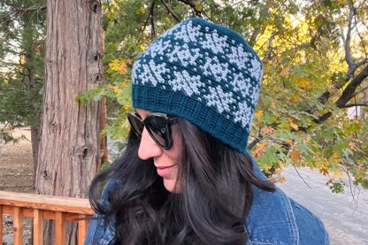 This modern snowflake Fair Isle beanie is great for all those Frozen fans out there. You can create so many different looks by changing the colors of the falling snowflakes and background color.
