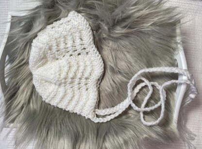 The pattern gives instructions to knit this bonnet in first size, to fit from birth to approx 3 months.