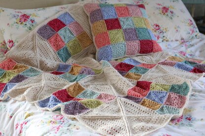 A full pattern for a blanket and cushion, including