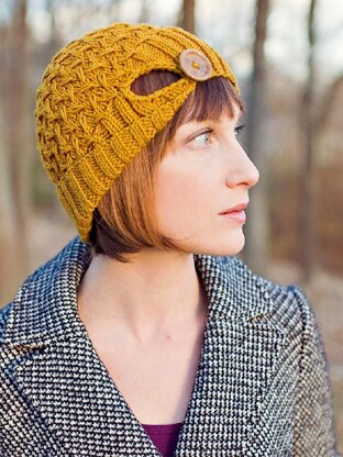 Cloche style hat with a slipped stitch cable pattern and options for two brim styles. The more feminine split brim is shown, but instructions for a joined brim result in a more gender neutral style.