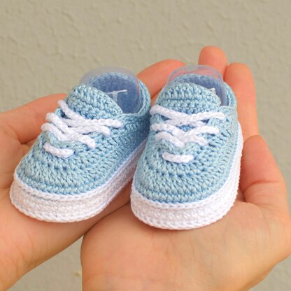 PDF crochet pattern for adorable baby sneakers – create your own handmade baby booties in 4 sizes (from newborn to 9 months). This is a digital crochet tutorial with step-by-step instructions and a full video guide, perfect for making DIY baby shower gifts, pregnancy presents, or unique newborn photo props. Not finished booties – you will receive a downloadable crochet pattern to make them yourself.