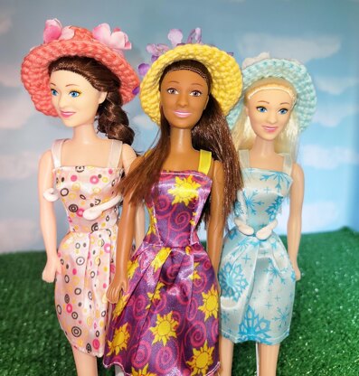 Everyone gets new clothes for Easter; don't forget your fashion doll. She deserves a new Easter bonnet, too. Crochet several different colors in an evening from your scrap basket. Each hat uses only 12 yards of cotton worsted. These hats would also look great as decorations on your Easter tree.