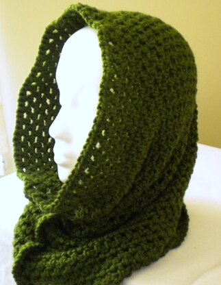 A lovely crocheted cowl /hood with a welt in front that looks like a small ruffle. The small openwork pattern can be worn both as a cowl or a hood.