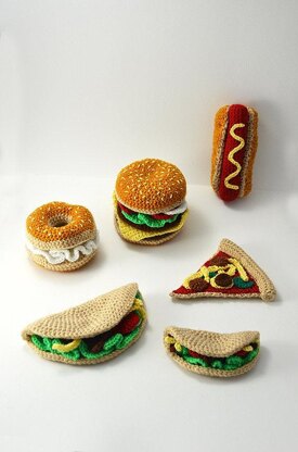 Fast Food Collection: Fast Food Crochet Pattern, Fast Food Amigurumi, Pizza Crochet Pattern, Bagel Crochet Pattern, Hotdog Crochet Pattern, Hamburger Crochet Pattern, Taco Crochet Pattern