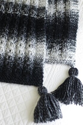 Description: Achieve the look of knit cables without actually knitting cables! Say hello to the Faux Cable Blanket, an advanced beginner knitting pattern that uses basic stitches to create a braided cable look, and also produces a beautiful ribbed opposite side.