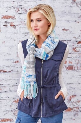 Faux Fair Isle Knit Scarf in Red Heart Super Saver Fair Isle - LM5791 - Downloadable PDF