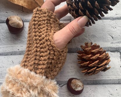 Crochet your own faux fur wrist warmers in this classic design. The pattern is beginner friendly and features a photo tutorial explaining the simple technique to help you crochet with faux fur yarn.