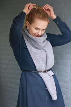 THIS REVERSIBLE ORIGINAL LONG ACCESSORY IS ULTIMATELY A LONG-SLEEVED SCARF THAT YOU CAN STYLE IN A VARIETY OF DIFFERENT WAYS FROM A TRADITIONAL SCARF, OR INTO A COWL, AND AS A SHRUG WITH A MYRIAD OF LOOKS ACCORDING TO YOUR NEED AND OCCASION. CONSTRUCTED TO BE KNIT FROM CUFF TO CUFF AND IN THE ROUND USING HALF FISHERMAN’S RIB, THIS ACCESSORY FEATURES TUBULAR CAST ON AND BIND OFFS AND CLEAN EDGING FOR A MORE REFINED LOOK.