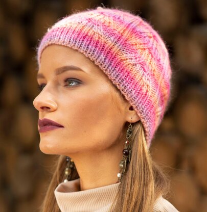 Faye is a textured hat knitted in the round.