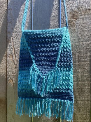 This cute bag is worked in the round from the bottom up with two main stitches – single and double crochet. The straps is adjustable and the bag can worn on the shoulder crossbody bag. Added bonus, it coordinates with the Criss Cross Sunglasses Case. Great for all ages!