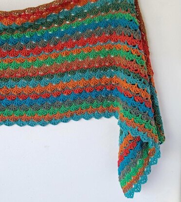 Féile is an Easy Crochet Wrap that can be worn as an elegant shawl draped on your shoulders, or as a cozy scarf. It is made in glorious rich colours that I had in my stash - mainly orange and turquoise that perfectly compliment each other! This easy to wear rectangular shawl is worked in a four-row repeat crochet pattern, and it’s easy to customize for your perfect size. This stunning easy crochet wrap is a beginner-friendly pattern and includes a helpful crochet chart. You can use the recommended yarn or any similar weight yarn to make this wrap. You can choose a DK weight cake yarn or a random mix of colours – it is a great stashbuster!