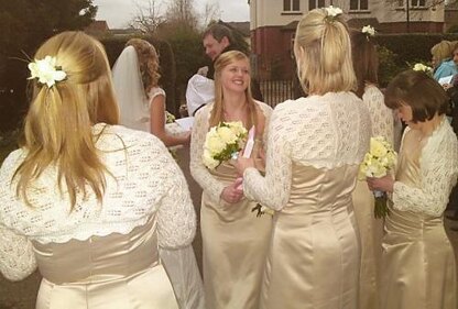 Originally designed for the bonny maids of blushing bride Felicity, this shrug could easily be made in a more versatile colour for every day use. In summer, Felicity is a perfect cover up for the arms when wearing strapless tops, and come winter, is a great addition to an evening party dress, especially for the holiday season.