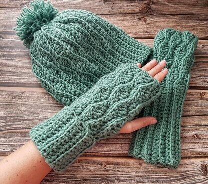 The Mittens are crocheted with Chunky Weight #5 yarn. Recommended hook sizes are listed in the pattern.