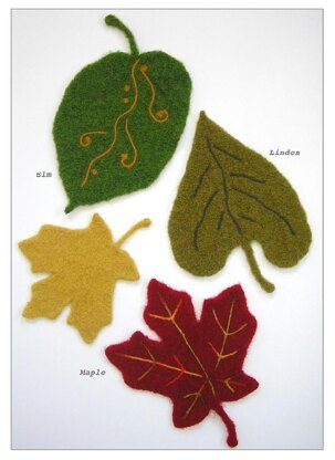 Create an Autumn display for your dining room table with these larger-than-life felted leaves! This pattern gives instructions for three leaf designs in two sizes: a small and large Elm, Maple, and Linden.