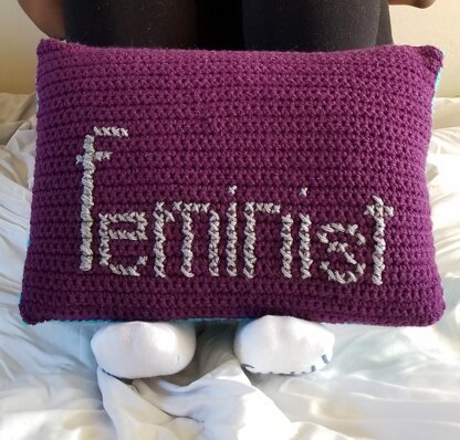 This is a crochet pattern for a FEMINIST pillow pattern. The pattern uses cross stitch to add the lettering to the surface of the pillow. The pattern requires the knowledge of C2C crochet to do the back or you may create single crochet back. The option is totally yours.