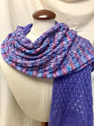 A classic rectangular wrap with sections of stockinette and lace that can be easily memorized, this project is intended to be a meditative knit. I recommend using one solid color and one variegated color to showcase the lace sections in two ways. The color options are truly endless! Due to its simple shape, this pattern is easily customizable.