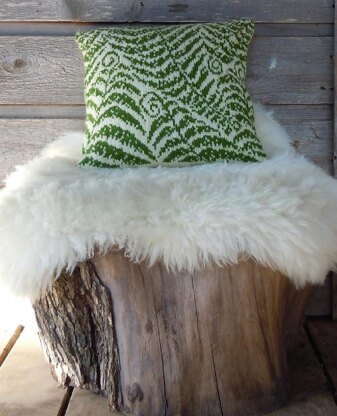 The front of the pillow is stranded, knit in the round and steeked. The back is knit flat, but front and back are knit as one continuous piece--the only seams are the side seams. The pattern includes a chart for the stranded portion and written instructions for the rest.