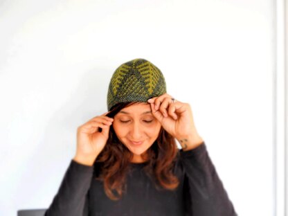 The beanie is worked following a color chart. It might be a challenging project for beginners due to the technique used, but it's easy to figure out and it would be a great opportunity to learn a new technique!