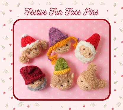 Finished size: About 2in (5cm) Materials • Oddments of DK (8-ply) yarn for the faces, hats • Bouclé or fleecy yarn in DK weight for hair, and beards • Dark brown or black DK yarn to embroider eyes • Toy stuffing • Pink pastel or blush powder • 35mm Steel brooch back pin