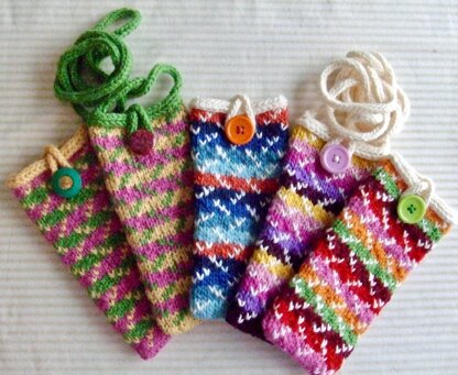 About the Design: Whether you call it an iCozy, iSleeve, iSock, or iCover, this pattern is the first in a series of knit covers for your cell phone or eyeglasses. Cell phones are ubiquitous, so, with a small investment of time, you can knit yourself, family, and friends a colorful i-cover! The covers only weigh about an ounce, so they make good use of all those tiny balls of stash yarns we can’t bear to get rid of. This is one of my favorite Faroe patterns – I find it rather addictive! I usually work it using white for the contrast stitches, but using only color is also playful.