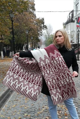 Shawl “Feteasca” will warm you in a cold day adequately replacing a between-seasons jacket or a warm jacket. Absolutely casual - suitable for a cocktail or evening dress and jeans with a leather jacket. The name of the shawl “Feteasca” means “maiden” in Romanian. Same name stands for a variety of grapes which I tired to express through jacquard style. It’s unique, one of a kind design.