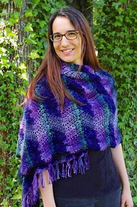 Fuse your own chevron adventure with this unique multi-fiber yarn. Will you follow the letter of the pattern or dare to be different by creating your own fiber fusion look of multi-textured stripes? Careful attention to tension stacks the color repeats leading to gradient paths of textured hues. Worked on a large size hook, this quick shawl (or scarf) has beautiful drape in whatever fiber combination you choose.