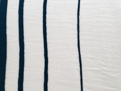 I knitted the sample in a bamboo/cotton yarn, which stretches enthusiastically. It’s certainly possible to substitute yarns and use a different fiber (eg. wool or acrylic).