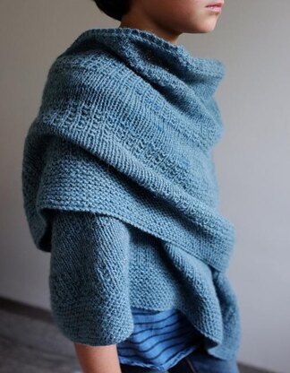 Fichu bleu is a shawl with interesting shape & texture. It's knitted from the base to the garter border.