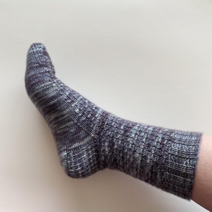 The pattern is written for cuff down socks specifically for the magic loop method of knitting in the round. It features a 2x2 ribbed cuff, a flap and gusset heel, and a rounded toe. Feel free to switch out your preferred cuff, heel and toe and adapt to whatever method of knitting in the round you prefer.