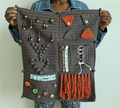 I designed this fidget/sensory blanket for people going through Alzheimer's, Dementia or other forms of memory and cognitive disabilities. Because I could never imagine growing old and not being able to use my crochet hook to create beautiful things. Because my heart goes out to those suffering this disease.