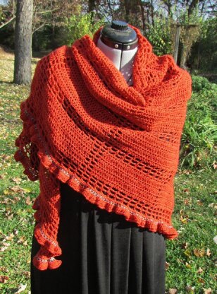 If done in lace or fingering weight yarns, this shawl makes a great four seasons wrap. A slightly heavier yarn would make a colder weather wrap.