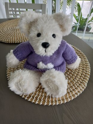 Fig Bear is knitted flat and assembled, I include a very detailed making up guide full of photos and tips to help you. His feet, legs and body are knitted as one part, head, arms and ears are knitted separately and sewn on. Because of the thickness of this yarn he’s a very quick knit. This pattern also includes a sweater with a choice of four motifs; Christmas Tree, Christmas Stocking, Reindeer and Heart. I have written the directions for these line by line, not a chart
