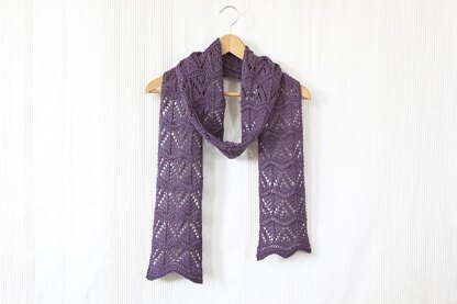 Pattern notes: This pattern is worked flat. Suggestions are given to customize the pattern (wider scarf, stole). Charts and written instructions are provided.