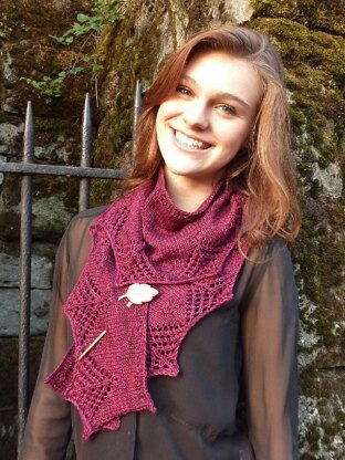 The Filigree scarf and shawls are variations on a theme. All begin with the same lacy filigree border; the difference is in the crescent shaping that is created with simple short rows. The scarf is a very wide, shallow crescent, and is best worn bandana-style. The shawls have a deeper crescent shaping. Each piece requires just a single 400 yard skein of fingering weight yarn.