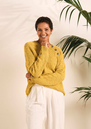 It’s all in the detail with this raglan sweater from Anna Hull. This relaxed knit with a flattering round neck features a charming button fastening at the shoulder and cuffs, whilst simple stocking stitch is punctuated with a pretty, all-over textured stitch pattern.