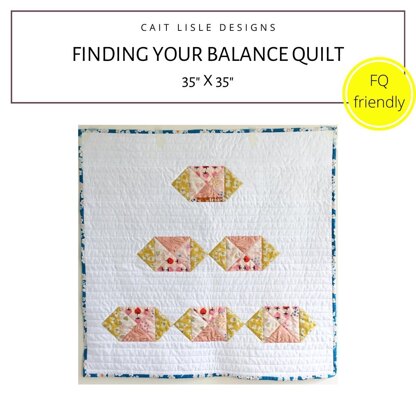 The Finding Your Balance Quilt is a super quick and easy pattern you can whip up in no time! Finishing at 35” x 35” it is the ideal size for a baby quilt or adding a fresh ‘pop’ to your home as a wall hanging.\n\nThis pattern is fat quarter and scrap friendly, and the downloadable pattern includes:\n\nEasy to follow directions on how to piece the blocks and assemble the quilt\nHelpful tips and diagrams for easy assembly\nA colouring page to help you choose your fabric layout and colour scheme\nBONUS instructions for a 7” mini-version!\n\nShare your projects with #FindingYourBalanceQuilt and #caitlisledesigns!