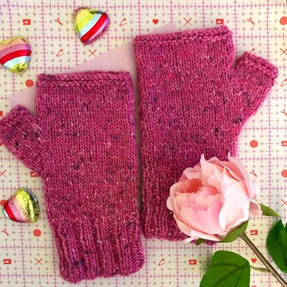 Worked flat and in one piece in stocking stitch with simple increases for the thumb, these are designed to fit an average adults hand, leaving the fingers open with a pretty edge. A few stitches will secure the side seam and the thumb seam.