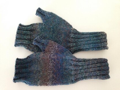 These mitts are simple and super easy to work. They were designed to show off a fingering-weight self-patterning yarn with a long repeat. The results will always be unique!