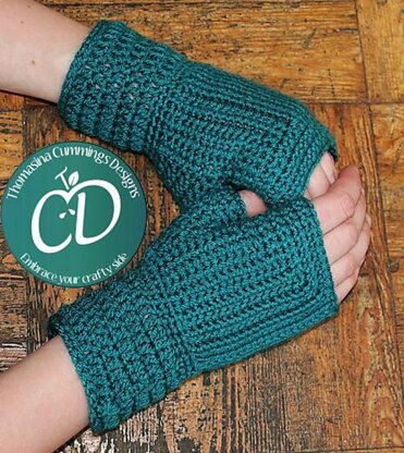 Four sizes of fingerless gloves/mitts to fit a hand circumference of 12.5 (15, 17.5, 20) cm or 5 (6, 7, 8) inches - circumference is measured around the widest part of the hand at the base of the fingers.