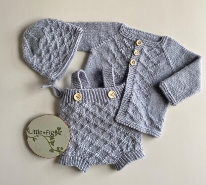 Cardigan & Bonnet Sizes: 0-3 (3-6, 6-12, 12-24)m