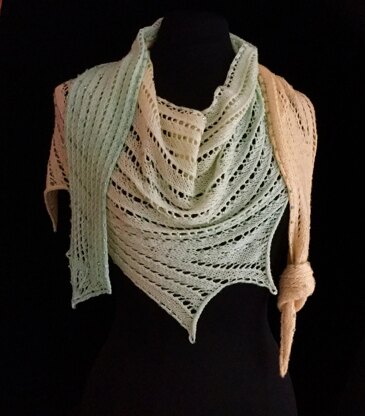 A wonderfully clever asymmetrical beaded (or not) design. Knit sideways, long and narrow with ‘FINS’ created along the way, for unlimited wearable ways to adorn and accessorize. This unique delightful design is knit seamlessly as one piece, and adjustable for length.