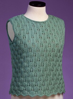 This stitch pattern was perfect for a simple shell, and I couldn’t wait to work it up in a yarn that shows great stitch definition. The texture is just beautiful and the pattern creates a natural wave to the bottom edge. Show off this shell all by itself or pair it with its matching cardigan (Pattern 107).