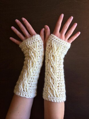 This is a pattern of intermediate difficulty and includes instructions for a pair of medium sized fingerless gloves, as well as suggestions for sizing up or down. The finished dimensions are approximately 9 inches in length and 6.5 inches in circumference at the knuckles. When designing this pattern we used approximately 170 g of Caron Simply Soft yarn. Included in the pattern is an appendix with pictorial guides for some parts of the pattern which the creator believes may provide a challenge for some crafters, particularly those on the beginner end of the spectrum. Written instructions are available exclusively in English and include the use of standard US crochet shorthand.