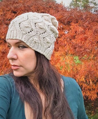 Intended to be worn with a slouch, you can also knit First Frost as a beanie. The pattern is offered in one size, as the stitch pattern stretches a good deal.