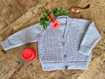 James C Brett Baby 4 ply: 1(1-2) x 100 g balls [440 m/482 yds]; OR Sirdar Snuggly 4 ply:2(2 – 3) x 50 g balls [226m/247 yds]; pair 3¼ mm needles; stitch holders; 3 small buttons