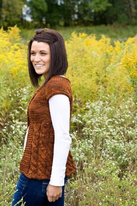 Top down with the only seaming being a small stretch up the hood. Rows of cables create a wonderful stretch and natural fit to this classic cardigan. Cable repeats can be varied to adjust the length of the cardigan to your preference.