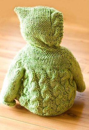Worked from the top down, the only seaming is on the top of the hood!