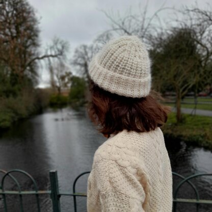 A simple knitted beanie in a fisherman's rib, which creates a dense but very elastic and warm fabric. Designed to be softly rolled back, it can be styled in numerous ways. The perfect accessory for blustery days! It is an a chunky/bulky weight beanie in a luxurious mix of wool, mohair and silk. Using a wonderfully textured brioche stitch. Worked flat and seamed, it comes in three sizes from child to adult.