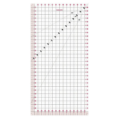 This transparent ruler provides continuous accuracy that is necessary for measuring and cutting perfect squares, strips, triangles or any shape for your quilt. For easy triangle or star patterns, the angle lines are clearly marked at 30 degree, 45 degree and 60 degree. Metric measurements